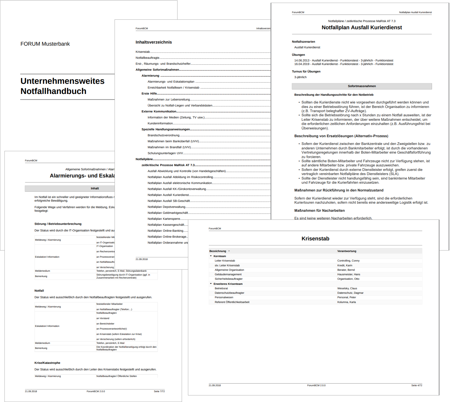 Abbildung: Beispiel PDF-Seiten aus dem „Unternehmensweiten Notfallhandbuch“