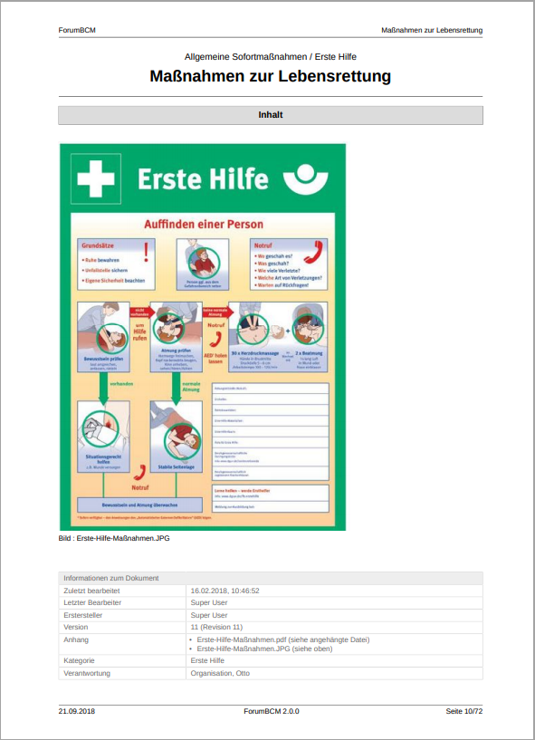 Innerhalb von ForumBCM gibt es mehrere Möglichkeiten eine Druckversion des Notfallhandbuchs zu erstellen. Es wird dabei eine PDF-Datei erzeugt, die Sie beliebig verteilen und drucken können.